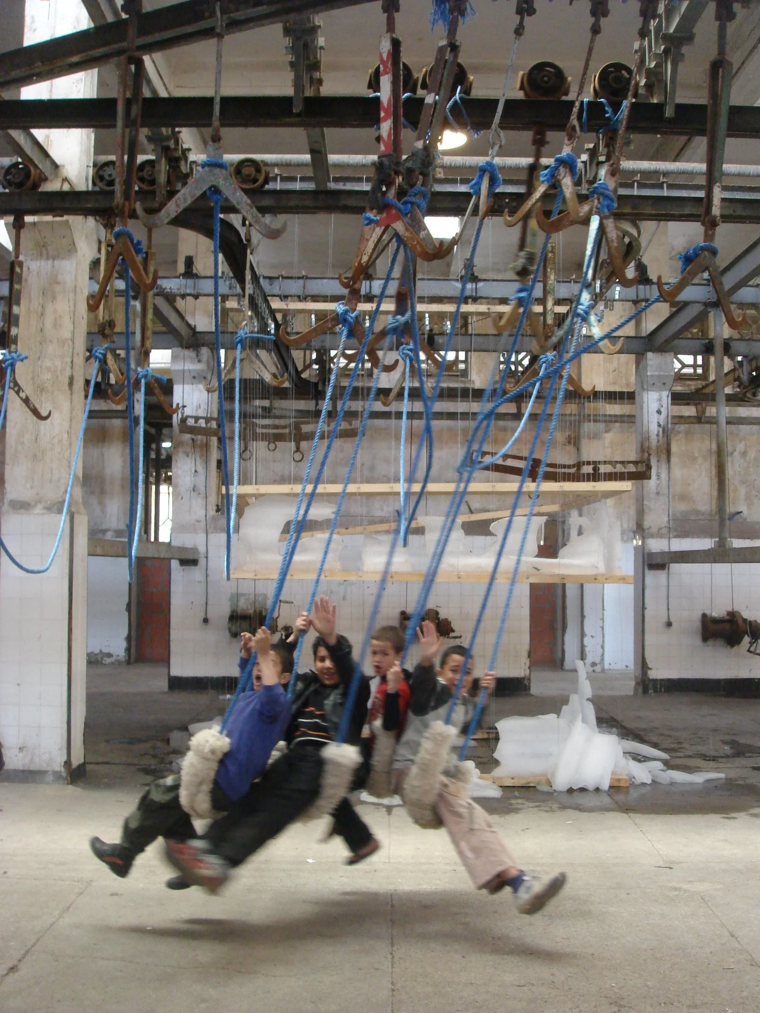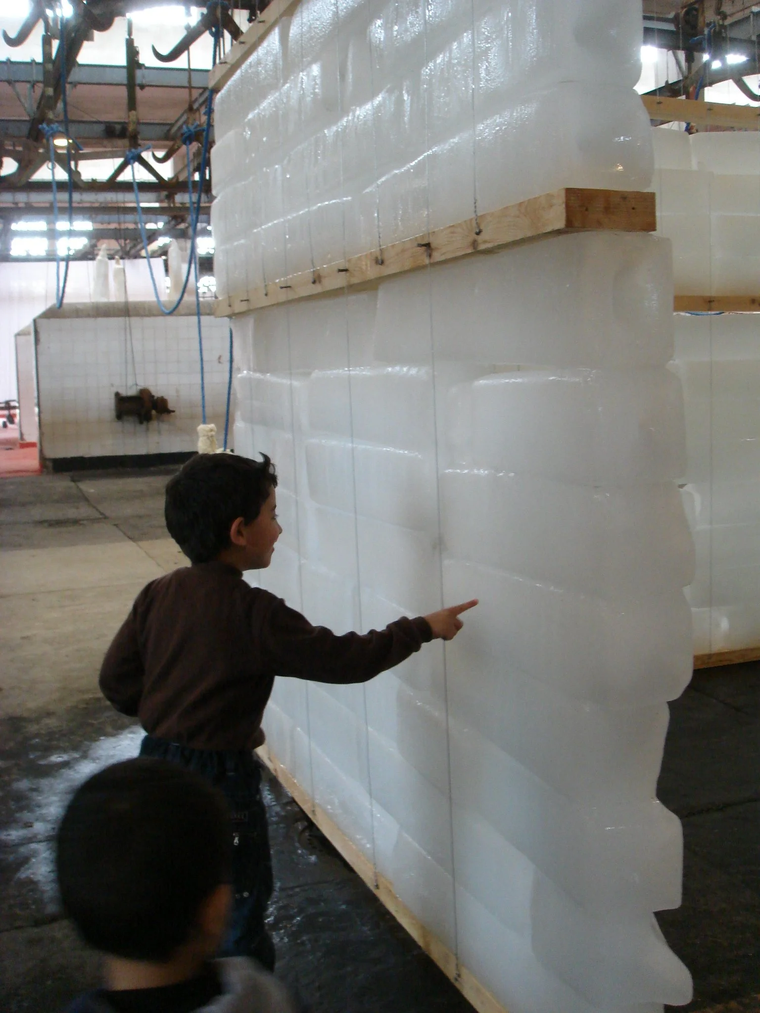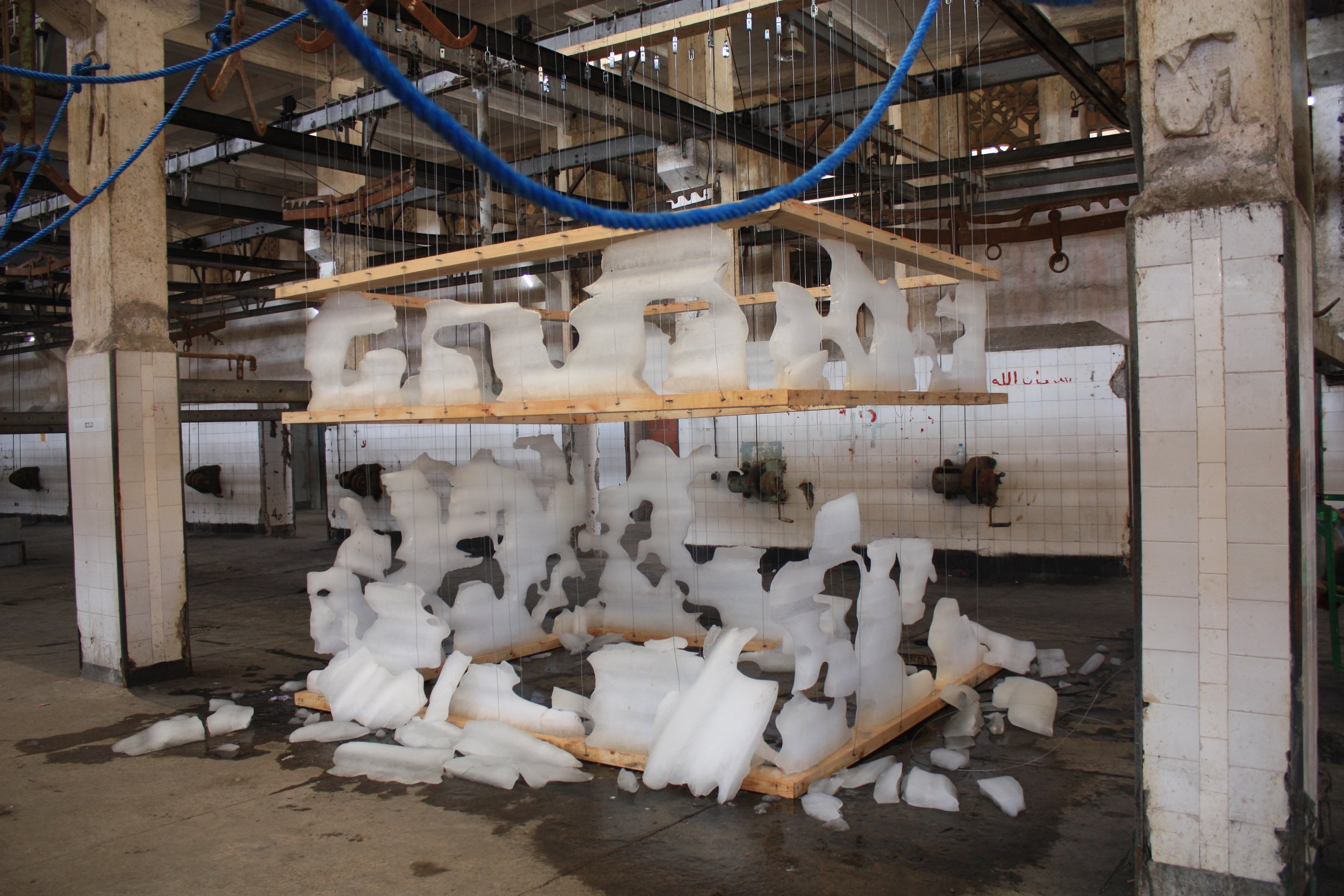 The Ice Box was created for the Casablanca Biennale of 2009, an event inaugurating the reopening of the city’s abandoned slaughterhouse as a contemporary art space. Composed of 150 blocks of industrial ice, the Ice Box, like the abattoir itself, is a space apart: a quiet space in a public building, a cold space in a hot climate, a wet space in a dry landscape. Like the abattoir, it is a place ever-conscious of its own disappearance. More than a commentary on disappearance, however, the Ice Box is a metamorphosis: from an enclosed space it acquires windows, becomes a screen, a ruin, and then finally a memory. The Ice Box represents the purest form of public space: a space of interaction and encounter between individuals and their environment. Program, use, and type are neither predefined nor fixed, but merely a temporary state between the disappearance of the last state and the creation of the next.
