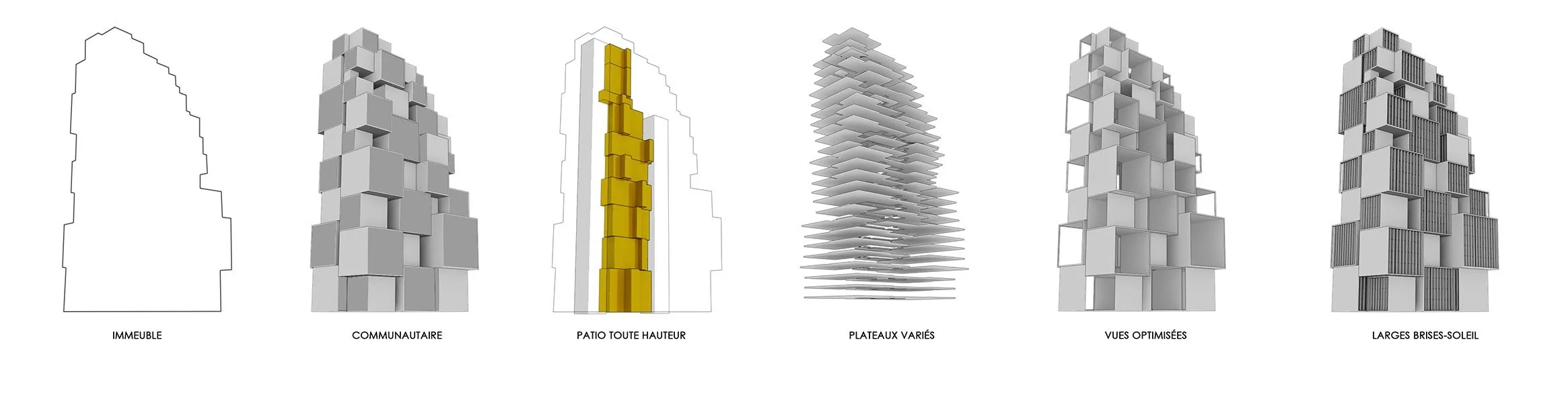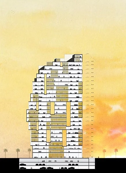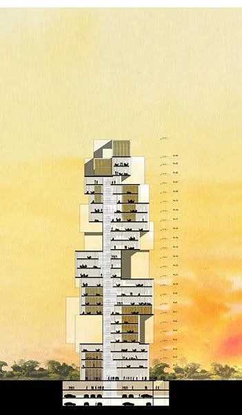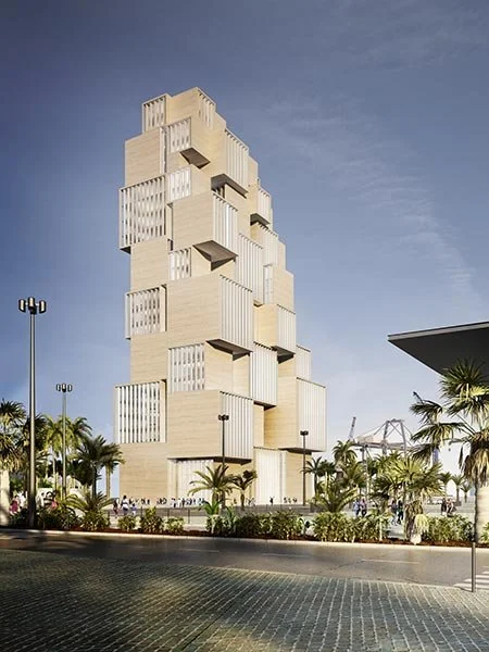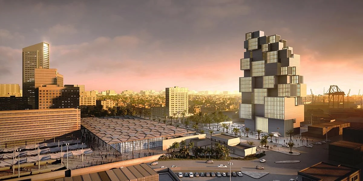 Pour la tour de l’Agence Nationale des Ports, nous voulions réinventer le lien aujourd’hui disparu entre la ville précoloniale et le port historique. La tour est une agrégation de volumes qui s’organise autour d’un grand patio central. Elle devient un nouveau phare, une émergence tout aussi singulière que multiple. La figure totémique et monumentale est ancrée dans l’échelle urbaine par la fragmentation des volumes qui la constituent. Malgré sa présence forte et sa forme déterminée, la tour garde une très grande flexibilité d’usage.