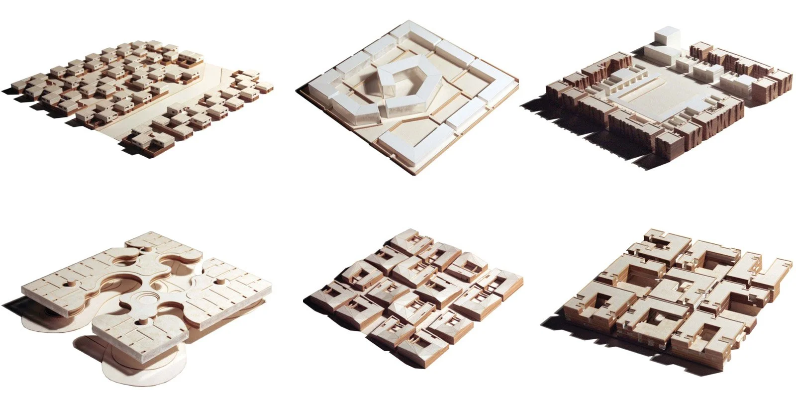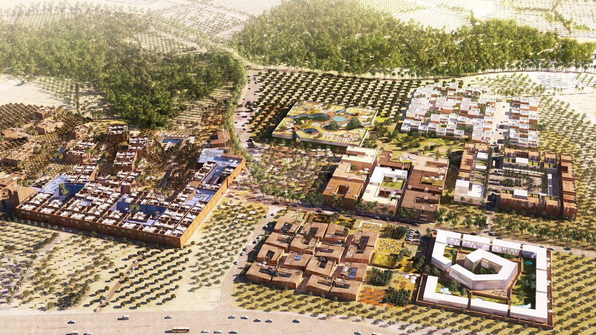 Entrant en dialogue avec les trames agricoles préexistantes, ce projet est un dispositif de colonisation d’un territoire agraire, plus que le dessin d’un projet urbain. Une nouvelle manière de s’inviter dans la Palmeraie. Nous proposons des mégastructures, non pas à l’échelle architecturale mais à la dimension d’un tissu. Ces ksour, ces châteaux-forts, sont des périmètres tenus et déterminés avec chacun une identité propre, mais dans une dimension constante de 100 m par 100 m. L’espace public et le paysage sont des interstices, des vides entre ces « quartiers ». La voirie n’est pas dessinée, ce n’est plus l’outil de la composition urbaine, elle est simplement résiduelle.