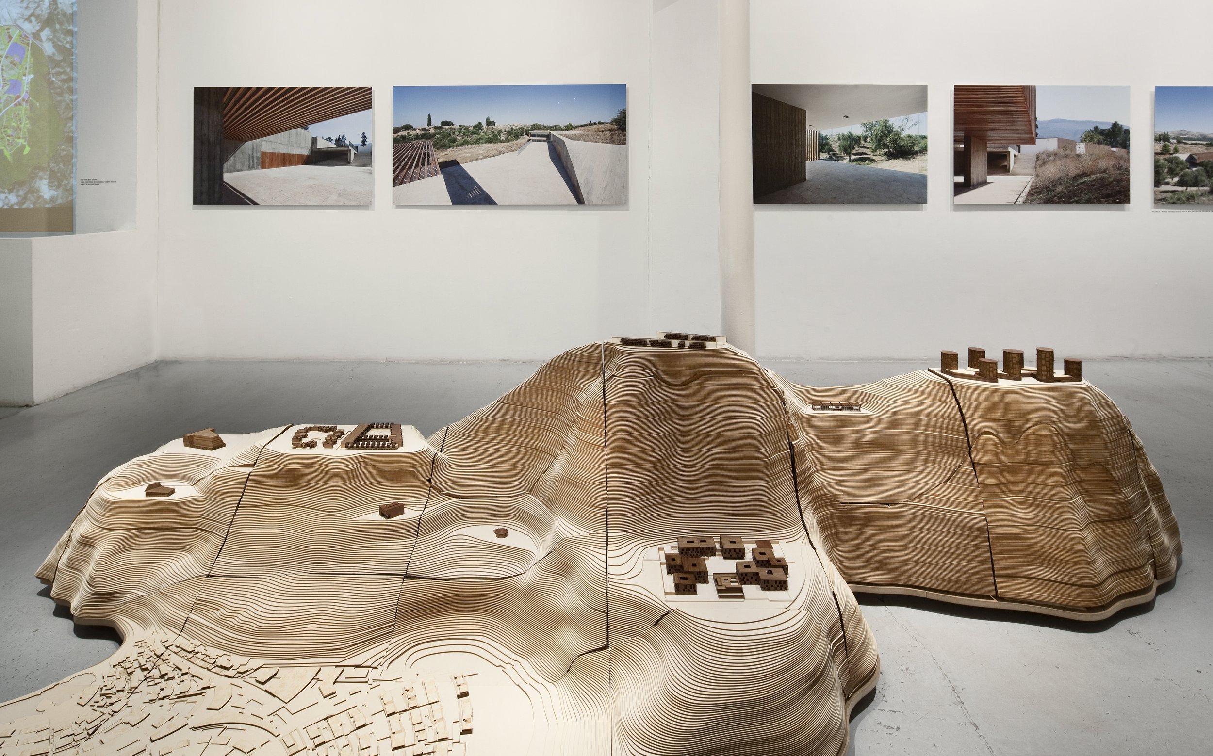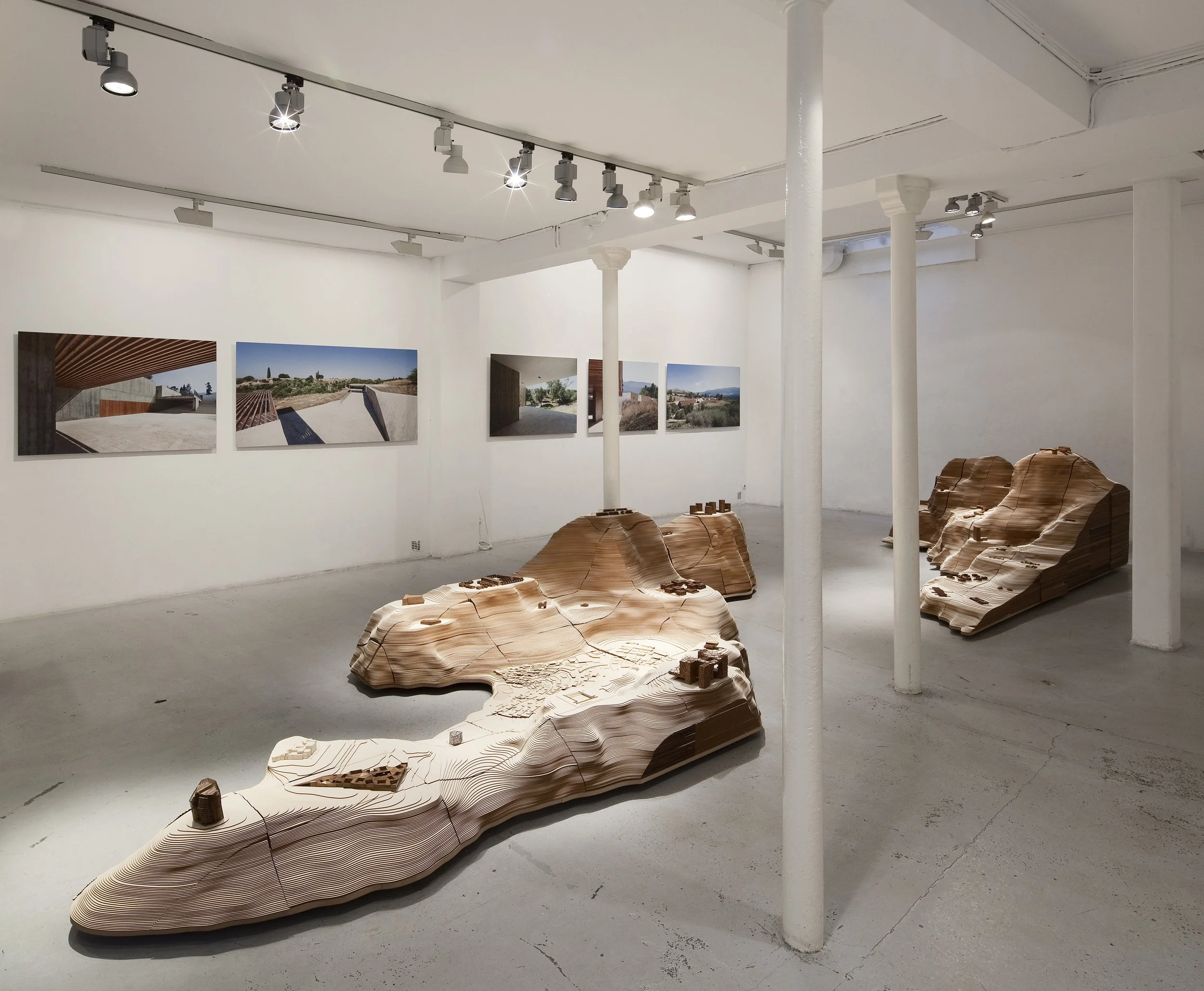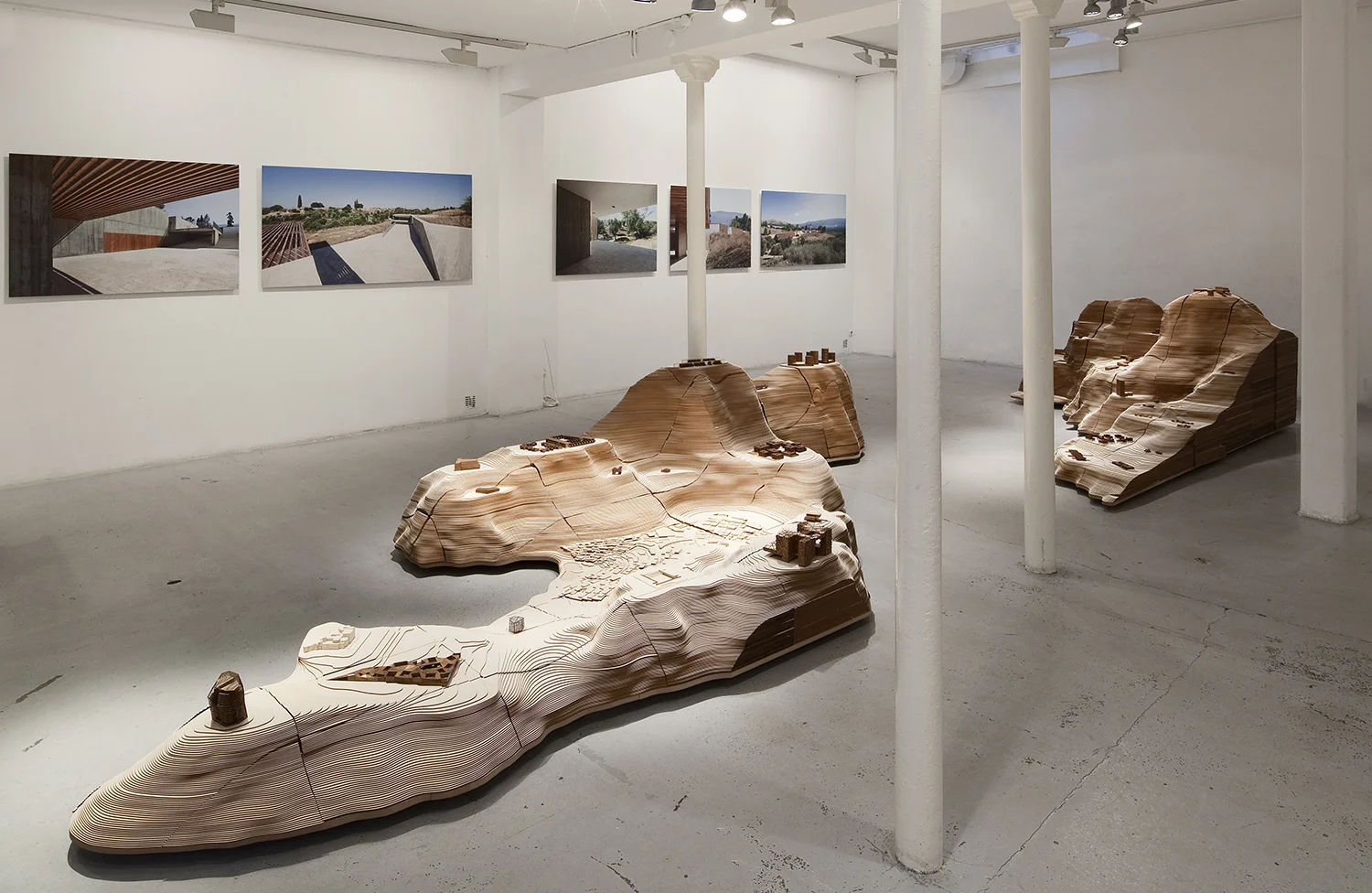 L’exposition présente une quarantaine de projets, de la maison à la ville, à la même échelle et sur un territoire continu. Dans une topographie imaginaire, nous avons voulu inscrire une mémoire tangible du travail de l’agence. Cette confrontation des projets fait apparaître l’exploration constante des échelles et des structures du territoire qui est au cœur de notre pratique. L’invraisemblable diversité des sites, des situations et des programmes sur lesquels l’agence travaille nous permet de confronter les territoires et d’y trouver de nouveaux modes d’intervention. Rechercher, décliner, pervertir et contourner les échelles devient notre stratégie de projet. Une forme de résistance à la standardisation de nos environnements, où la recherche de singularité ne se fait pas à travers la distinction formelle, mais par la volonté de s’inscrire dans une structure territoriale continue.