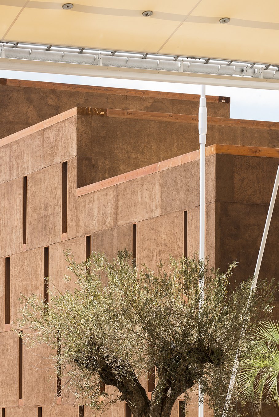 Pour répondre au thème de l’exposition universelle « Nourrir la planète », nous avons considéré que la contribution du Maroc devait porter sur la notion de ruralité, comme méditation sur l’équilibre entre la ressource, le territoire, la rareté et la matière. Le pavillon, entièrement construit en terre crue, s’inscrit dans l’ensemble de ces rituels. Nous avons dû acclimater et réinventer ces méthodes pour permettre la réalisation de cet ouvrage dans des conditions climatiques radicalement différentes. Un dialogue s’est alors installé avec les cultures constructives en terre du nord de l’Italie. L’expérience du pavillon du Maroc devait être la plus juste et la plus réelle possible, la moins déconnectée, la moins aseptisée. Le bâtiment crée son propre climat sans être conditionné, l’inertie seule de la terre atténue les températures. Le pavillon organise dans sa longueur une traversée géographique du territoire, du détroit et de la méditerranée jusqu’au désert du grand sud.