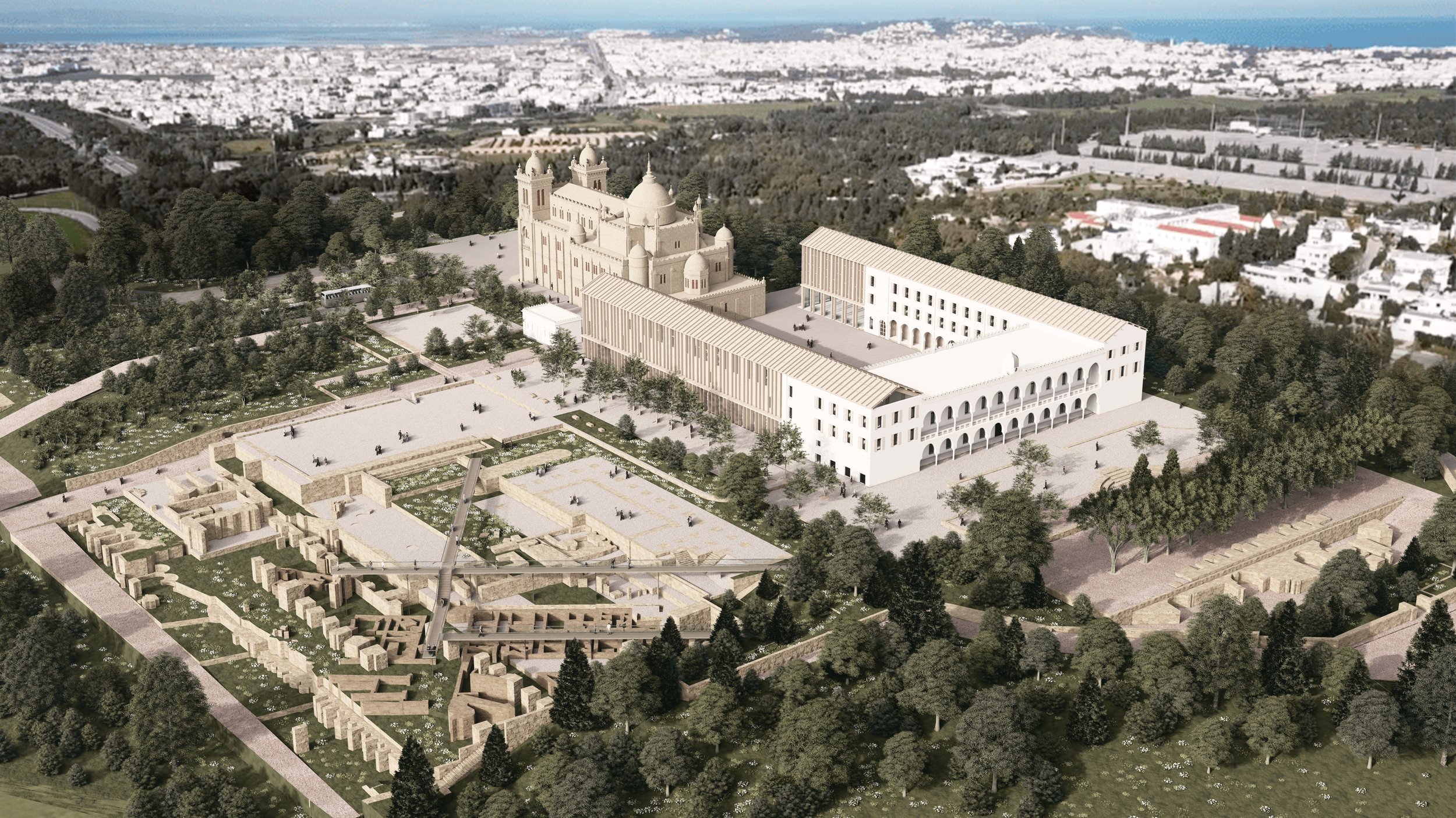 Located on the archaeological site at the top of the Byrsa hill in the city of Carthage, the museum's essential aim is to improve the reading, experience, and understanding of the site, and to fit in smoothly to propose a compact organization of all the uses necessary for the proper functioning of this exceptional place. The project is divided into three stages, starting with a clarification of the existing site, by meticulously restoring the three main buildings of the Pères Blancs seminary. Next, we remove contemporary traces by deconstructing all recent buildings. Finally, a new stratum will be added to complete the ensemble. The new wooden building will be the most "fragile", the most temporary.