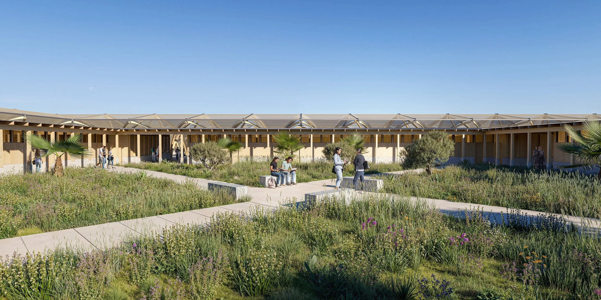 L’organisation spatiale des lieux s’inspire librement de ceux de l’UM6P de Benguérir et de Rabat : un réseau d’entités programmatiques disposées autour d’espaces ouverts de croisements et d’échanges, sur une trentaine d’hectares.