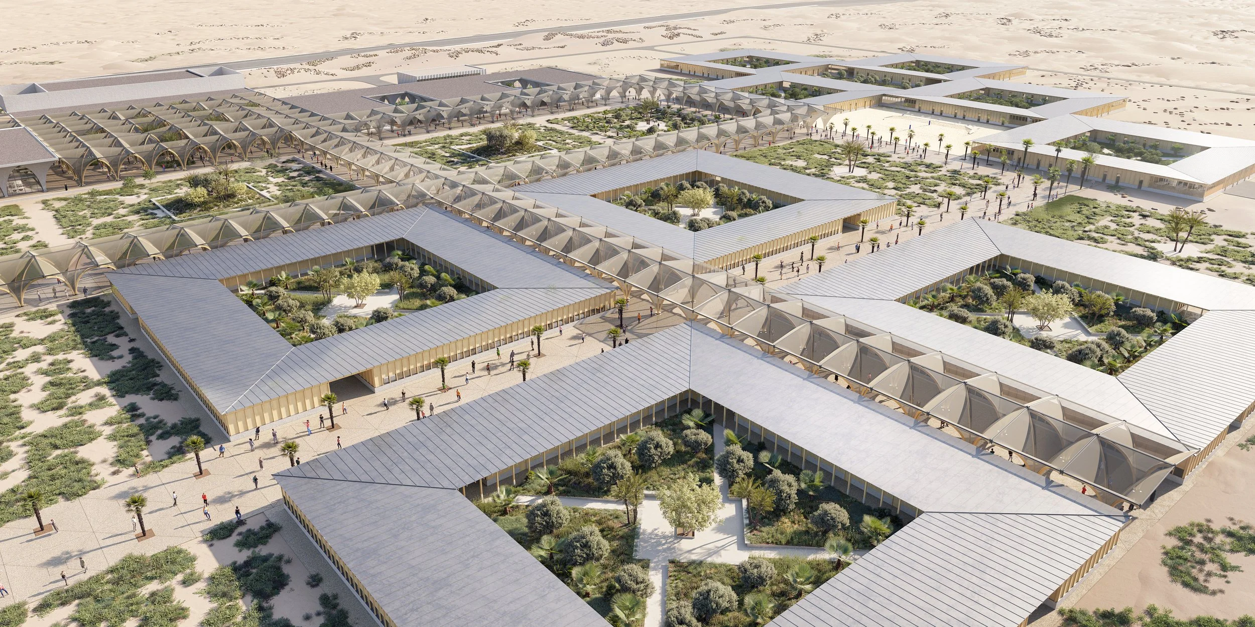 Dans un souci de développement durable et de rapidité de chantier, le projet de l’UM6P réutilise les modules en bois qui ont déjà servis au projet des Assemblées Annuelles du FMI à Marrakech, déployés pour l’occasion pendant quelques semaines.